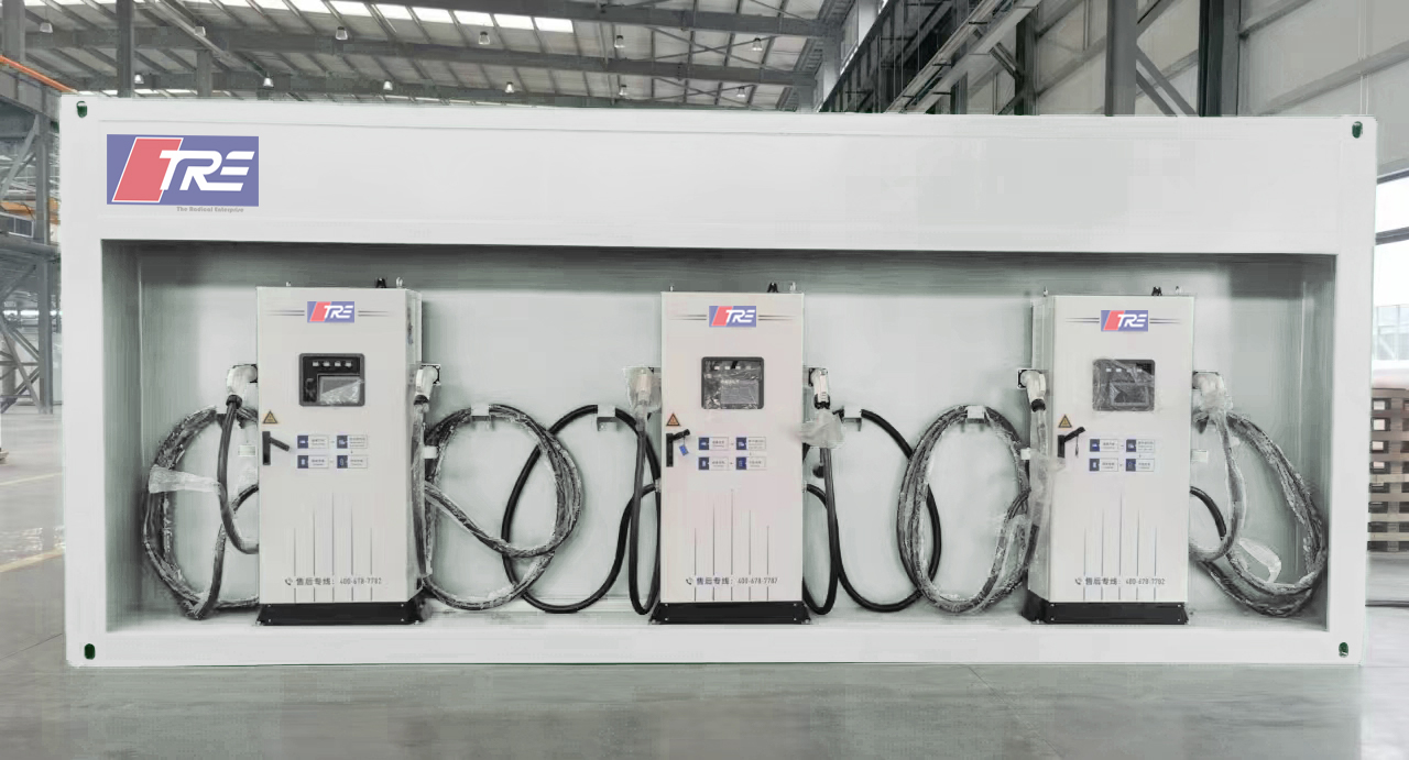 EV charging station with energy storage container for unstable power grids and high demand peak electricity usage.